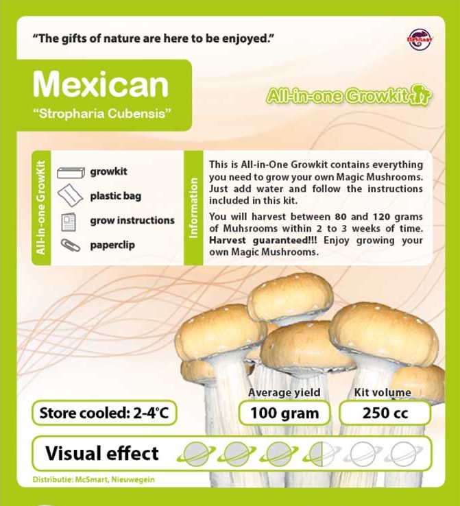 Mexicaanse paddo growkit 250cc – ideale Magic Mushrooms voor beginners. Vrolijke, energieke en visuele trip. Gemakkelijk kweken, ±100 g opbrengst, volledige All-in-One growset.