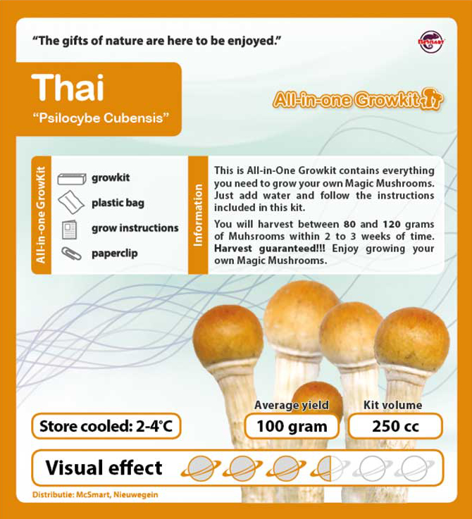 Thaise paddo growkit 250cc – krachtige Psilocybe Cubensis met hoge opbrengst, vrolijke en euforische werking. Complete All-in-One set, eenvoudig kweken, opbrengst ±100 g.